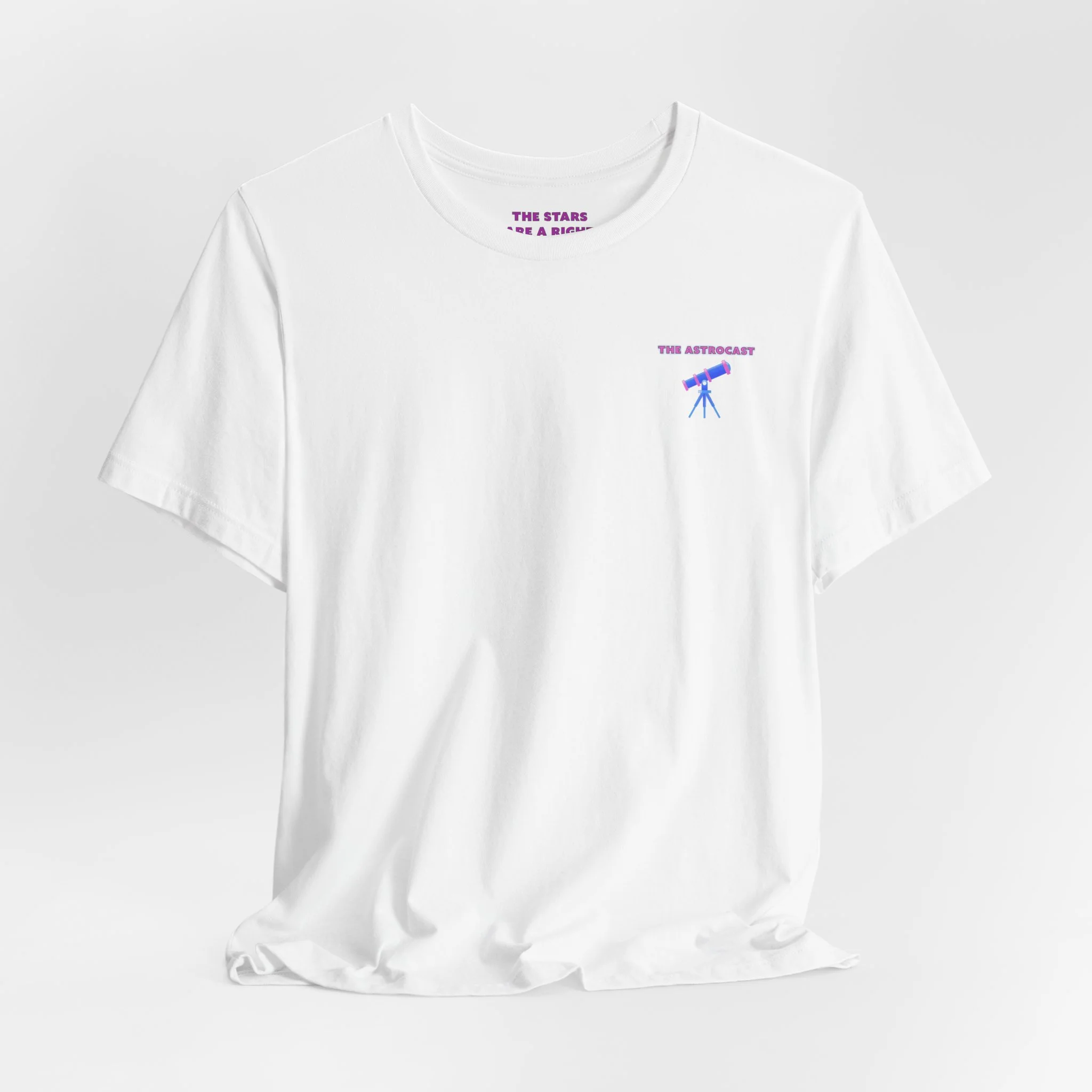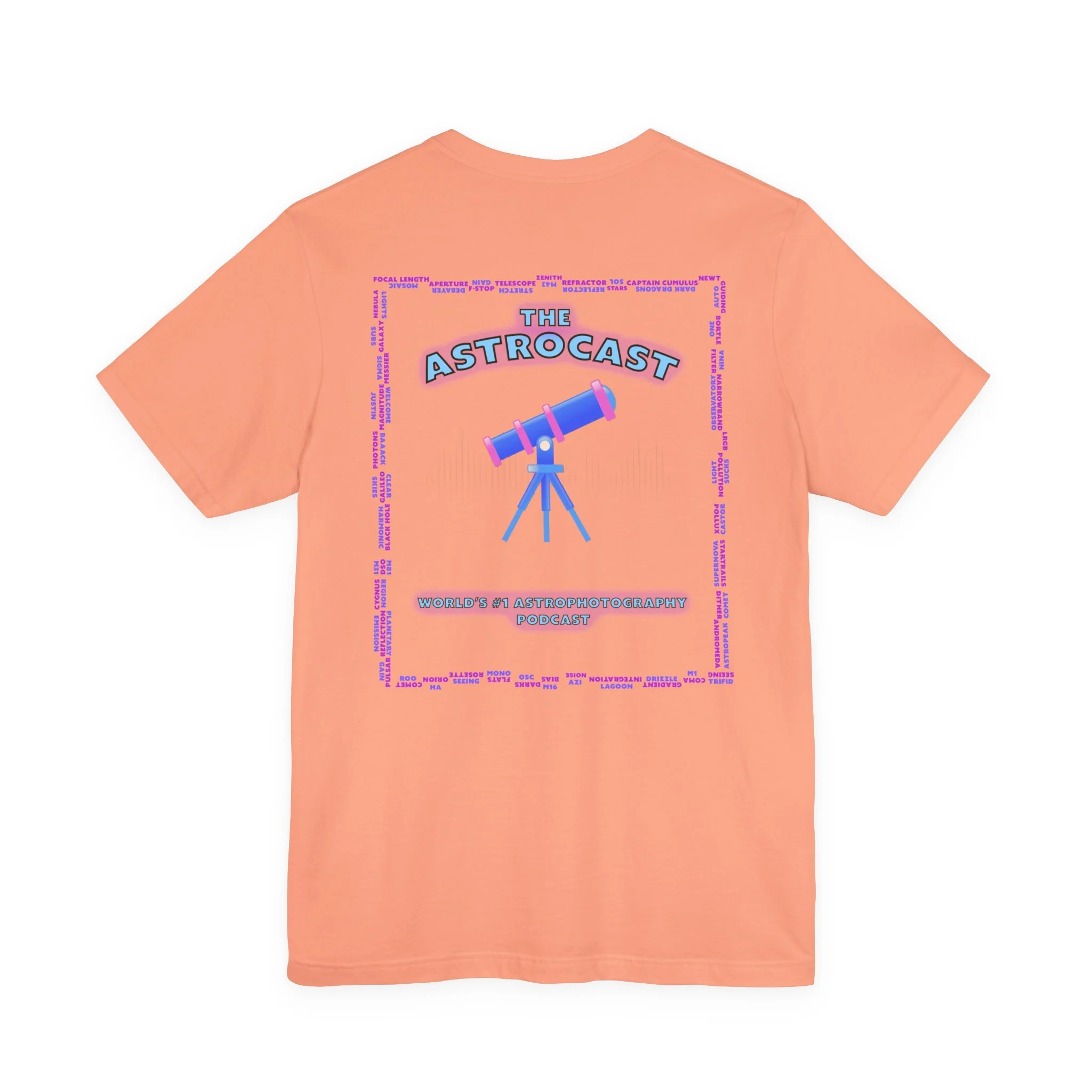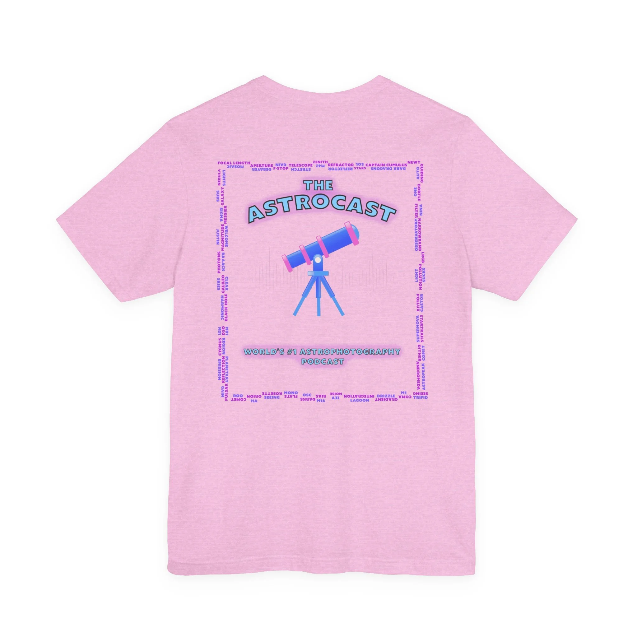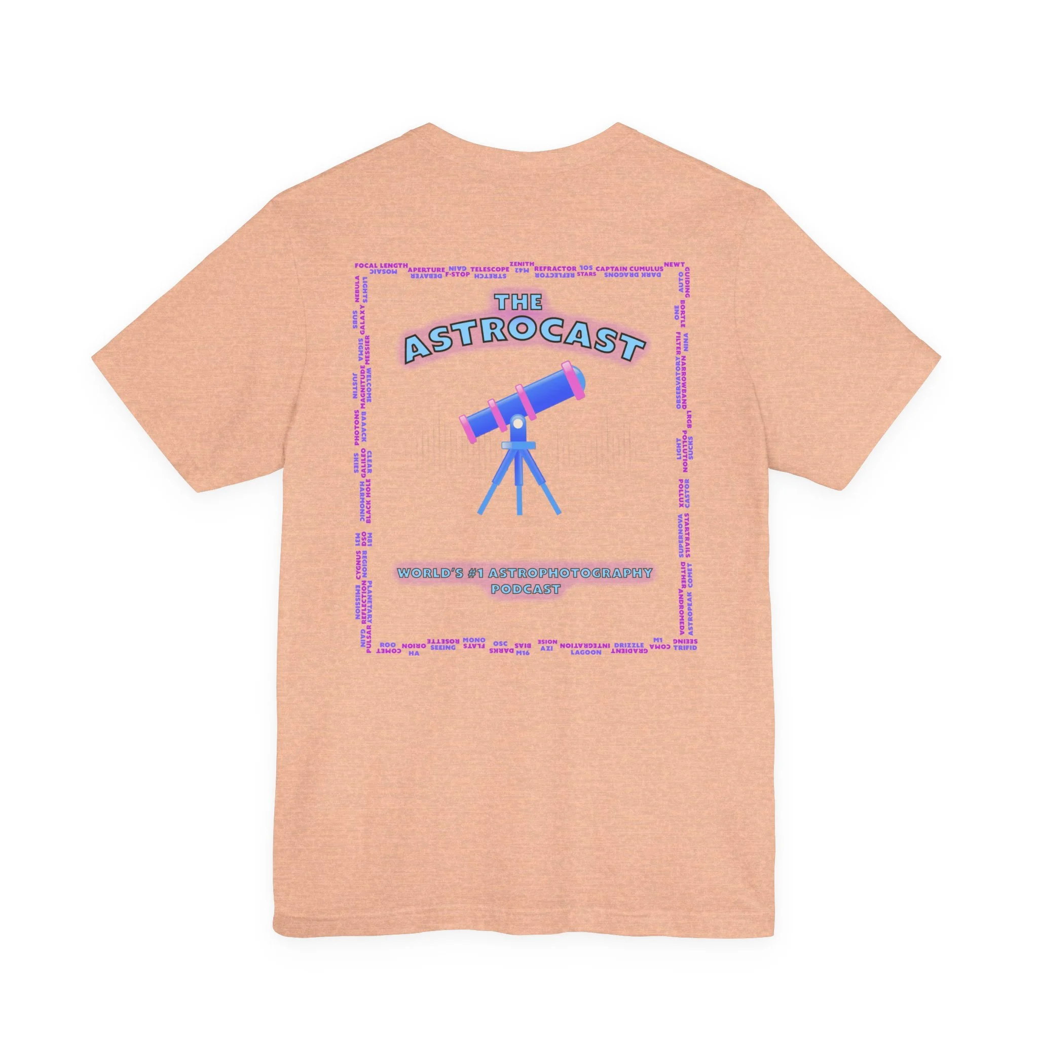 Lightweight and soft, this jersey tee carries a quiet enthusiasm for night skies and small telescopes. The front features The Astrocast logo over the heart, while the back opens into a framed, retro-inspired design that reads “The Astrocast”, framed by terms only true AP nerds will know and understand. The shirt breathes easily for late-night stargazing, outdoor meetups, or low-key studio days, and the clean crew neckline keeps the look tidy under a jacket or layered with a flannel. Wear on your next dark sky trip and gain a +1 coolness modifier.