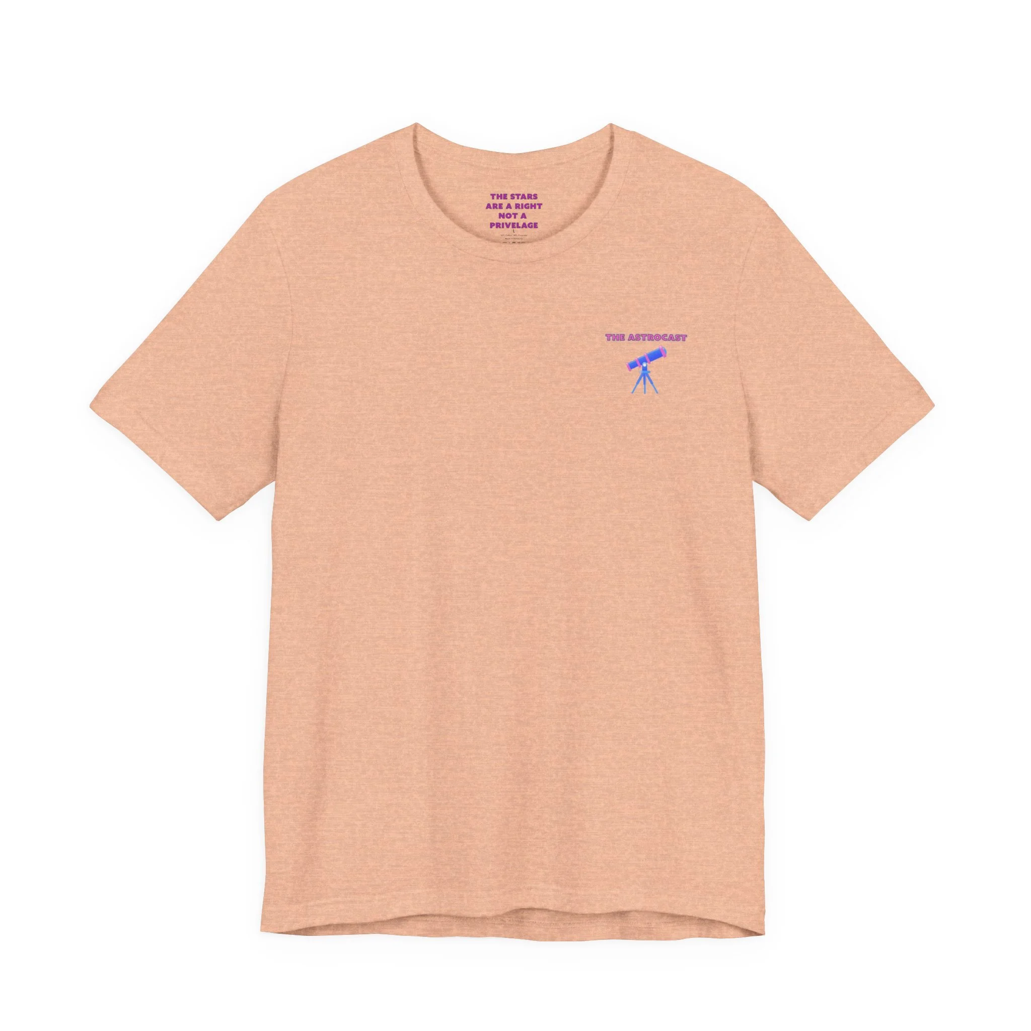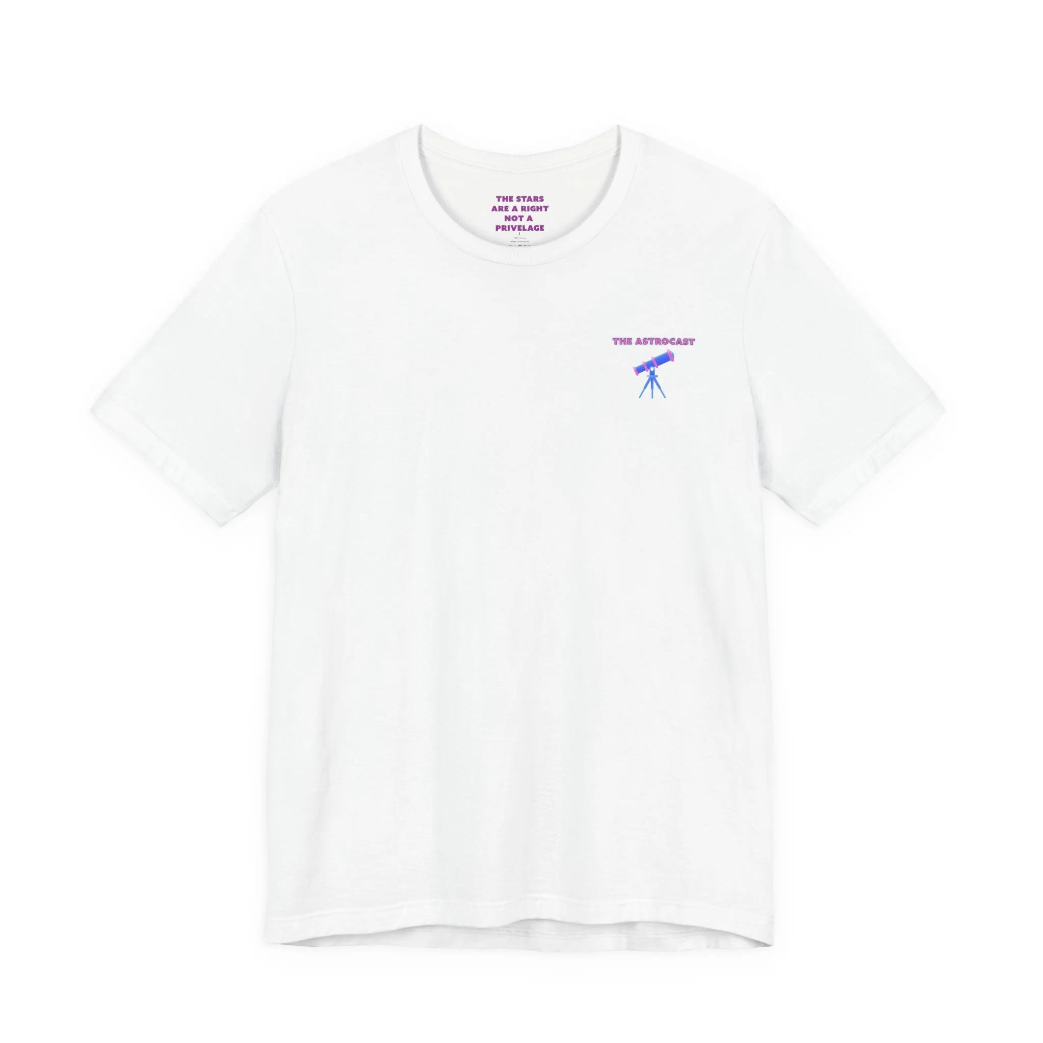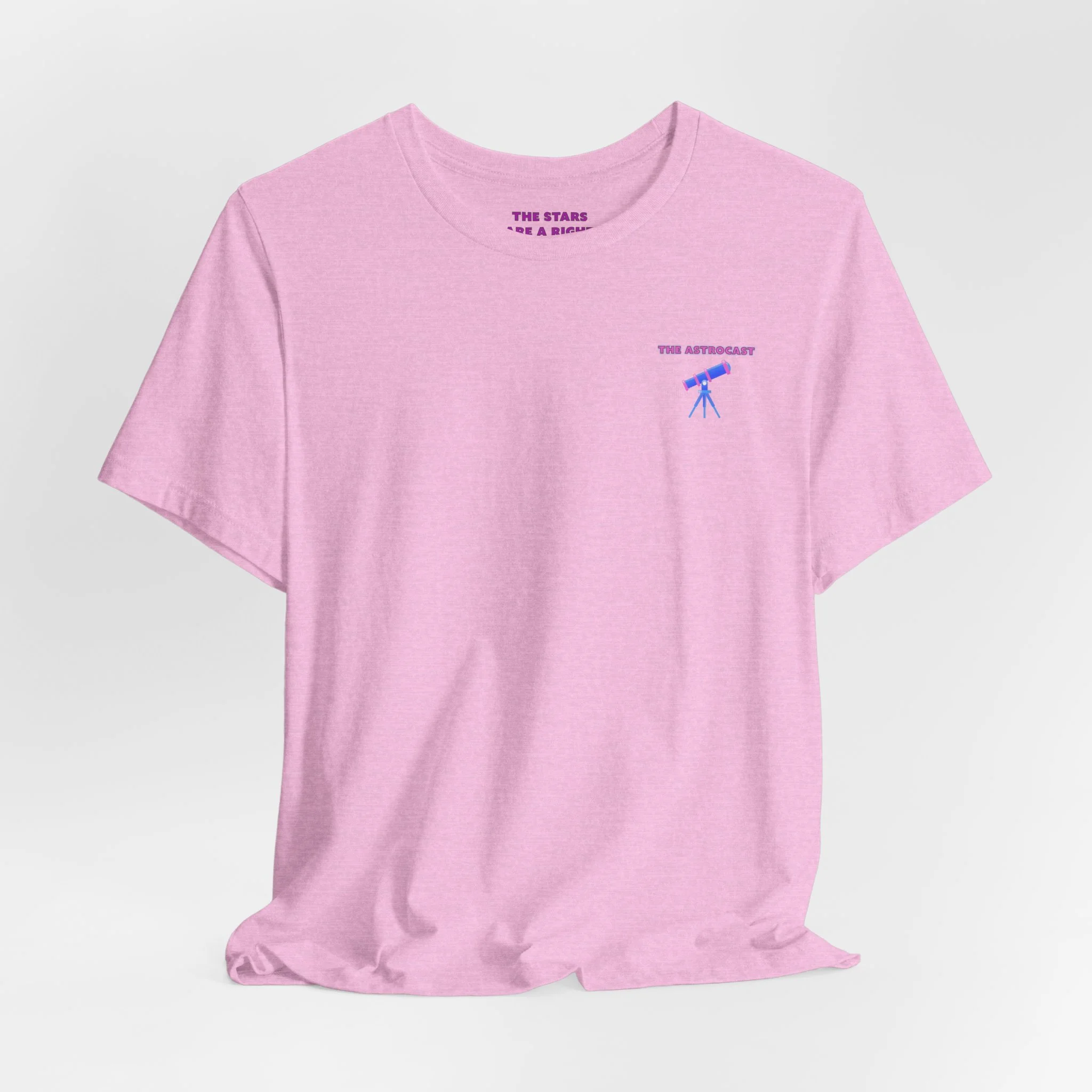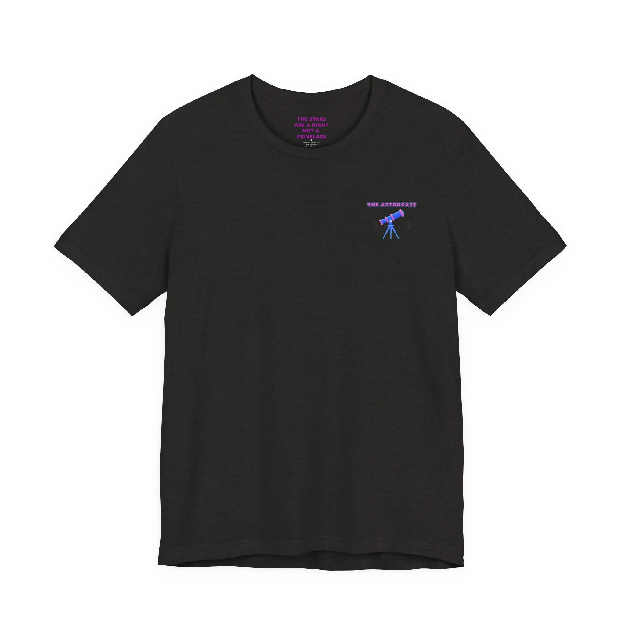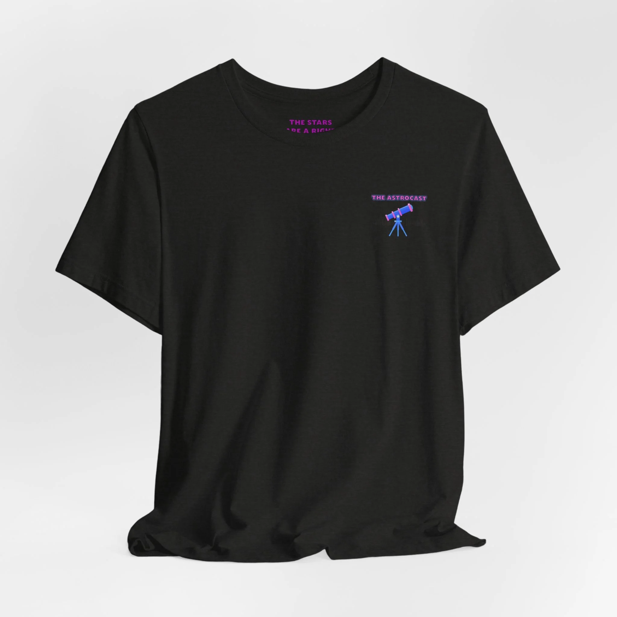 Lightweight and soft, this jersey tee carries a quiet enthusiasm for night skies and small telescopes. The front features The Astrocast logo over the heart, while the back opens into a framed, retro-inspired design that reads “The Astrocast”, framed by terms only true AP nerds will know and understand. The shirt breathes easily for late-night stargazing, outdoor meetups, or low-key studio days, and the clean crew neckline keeps the look tidy under a jacket or layered with a flannel. Wear on your next dark sky trip and gain a +1 coolness modifier.