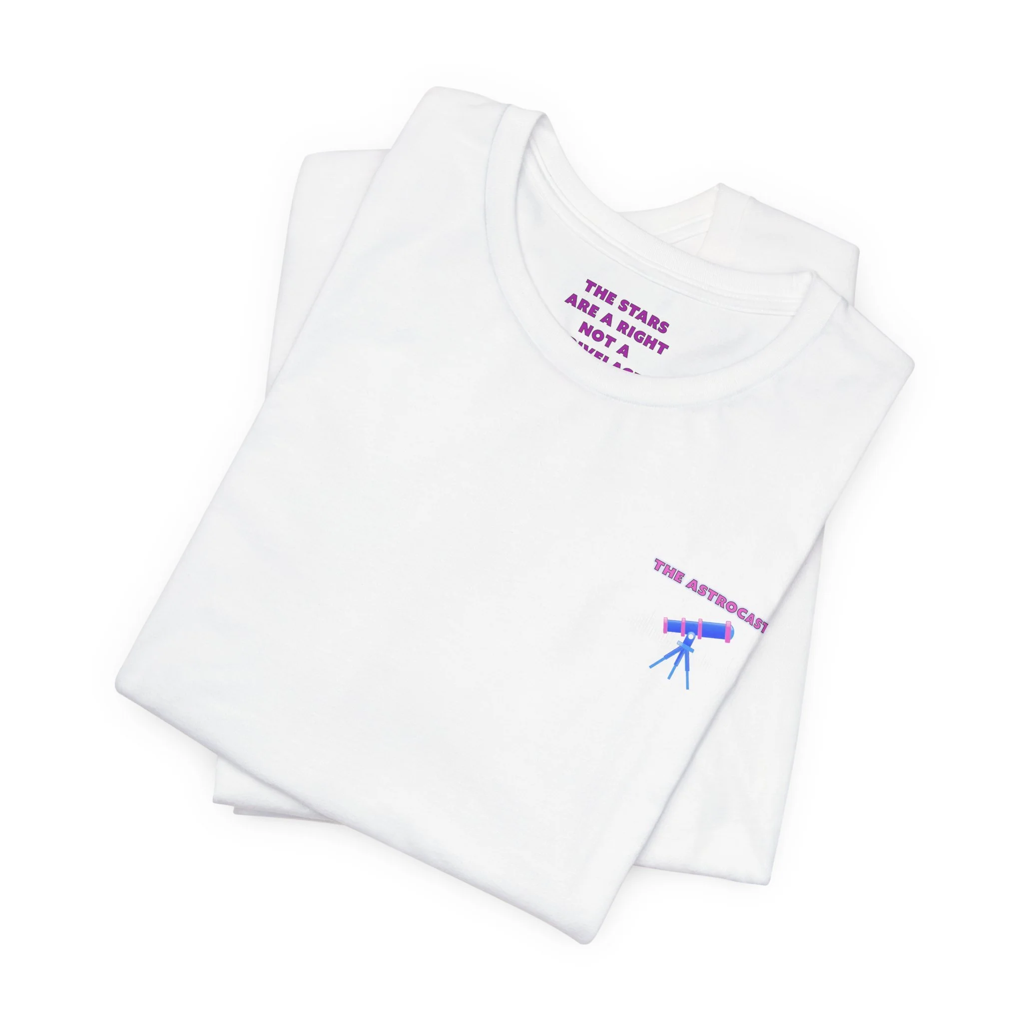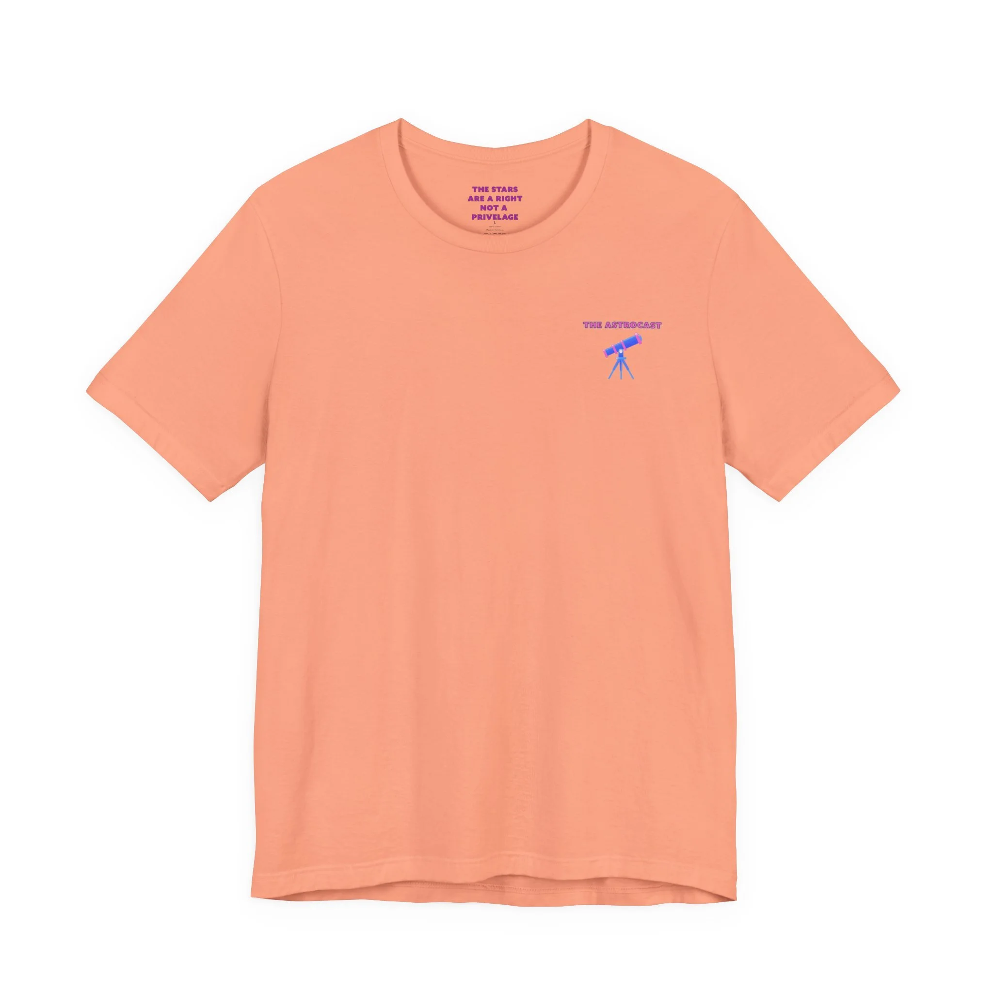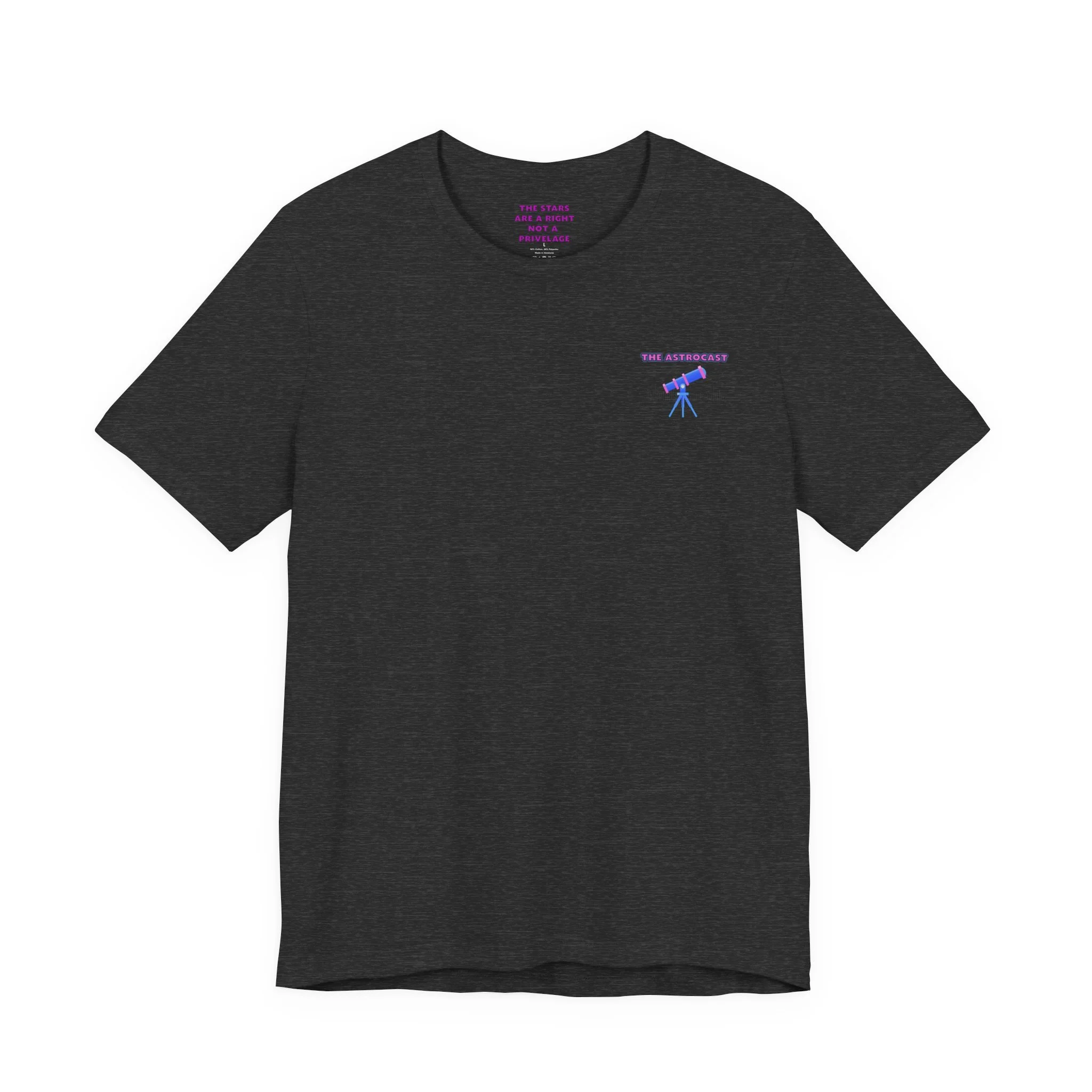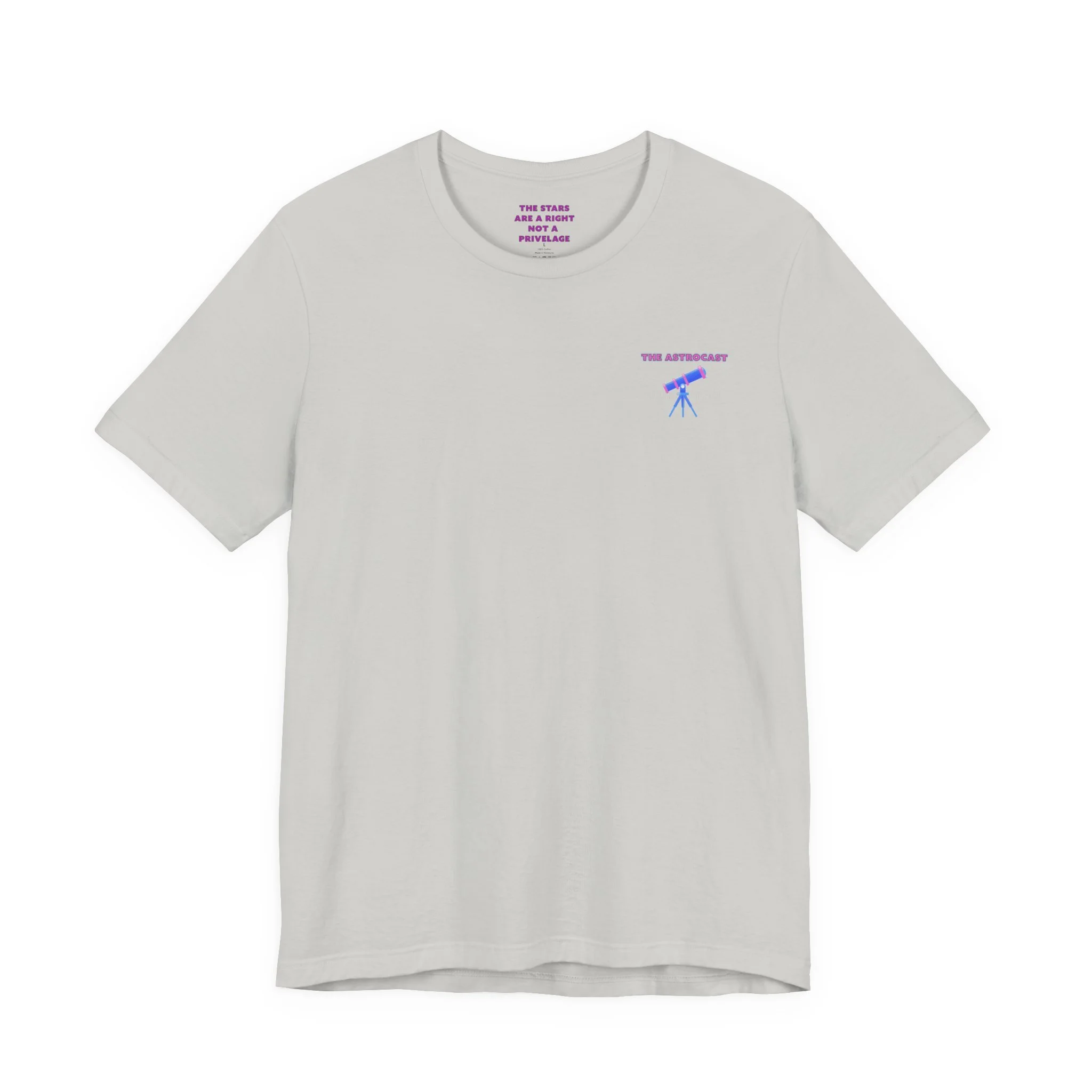 Lightweight and soft, this jersey tee carries a quiet enthusiasm for night skies and small telescopes. The front features The Astrocast logo over the heart, while the back opens into a framed, retro-inspired design that reads “The Astrocast”, framed by terms only true AP nerds will know and understand. The shirt breathes easily for late-night stargazing, outdoor meetups, or low-key studio days, and the clean crew neckline keeps the look tidy under a jacket or layered with a flannel. Wear on your next dark sky trip and gain a +1 coolness modifier.